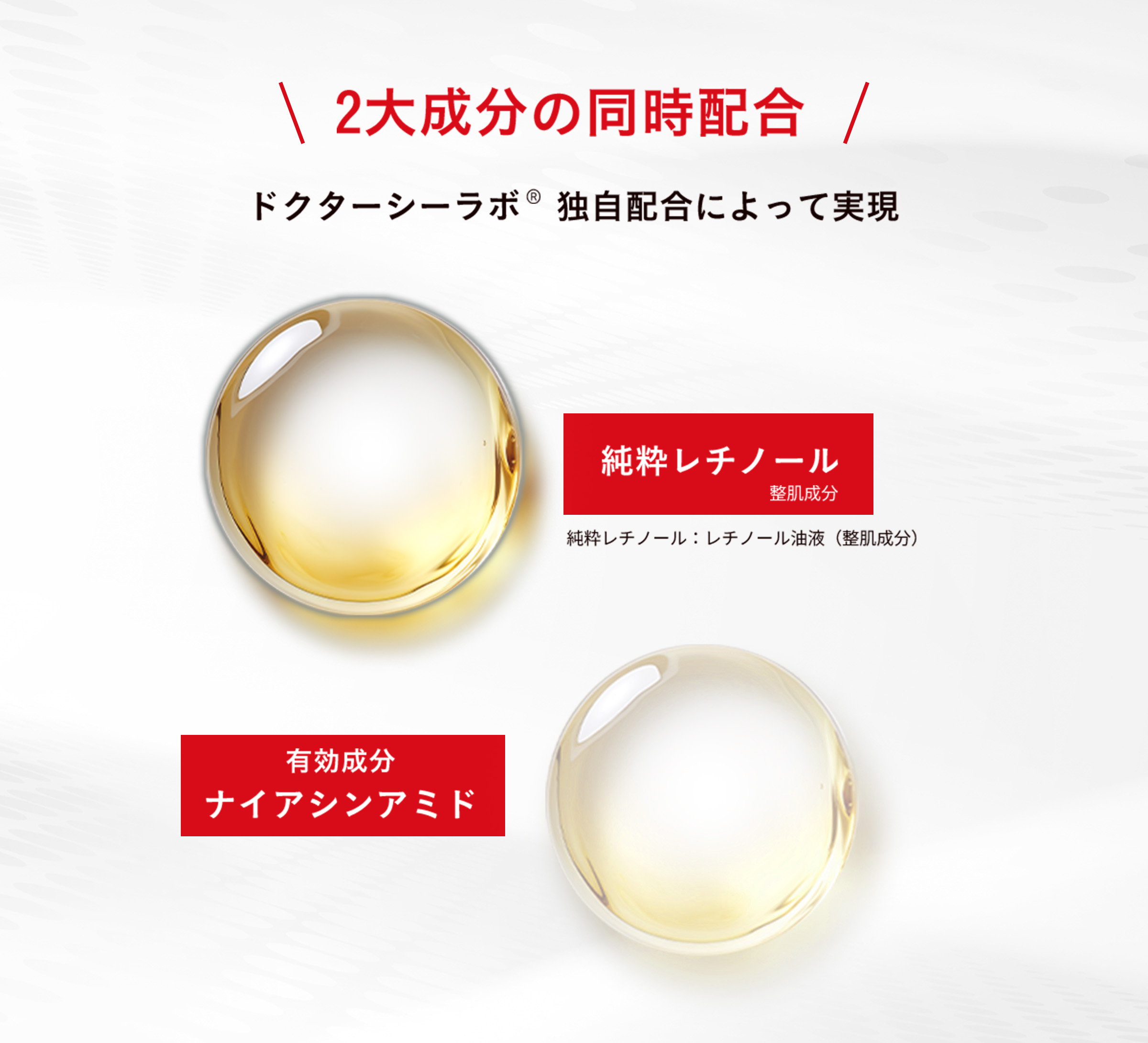 純粋レチノールとナイアシンアミドの2大成分を配合。