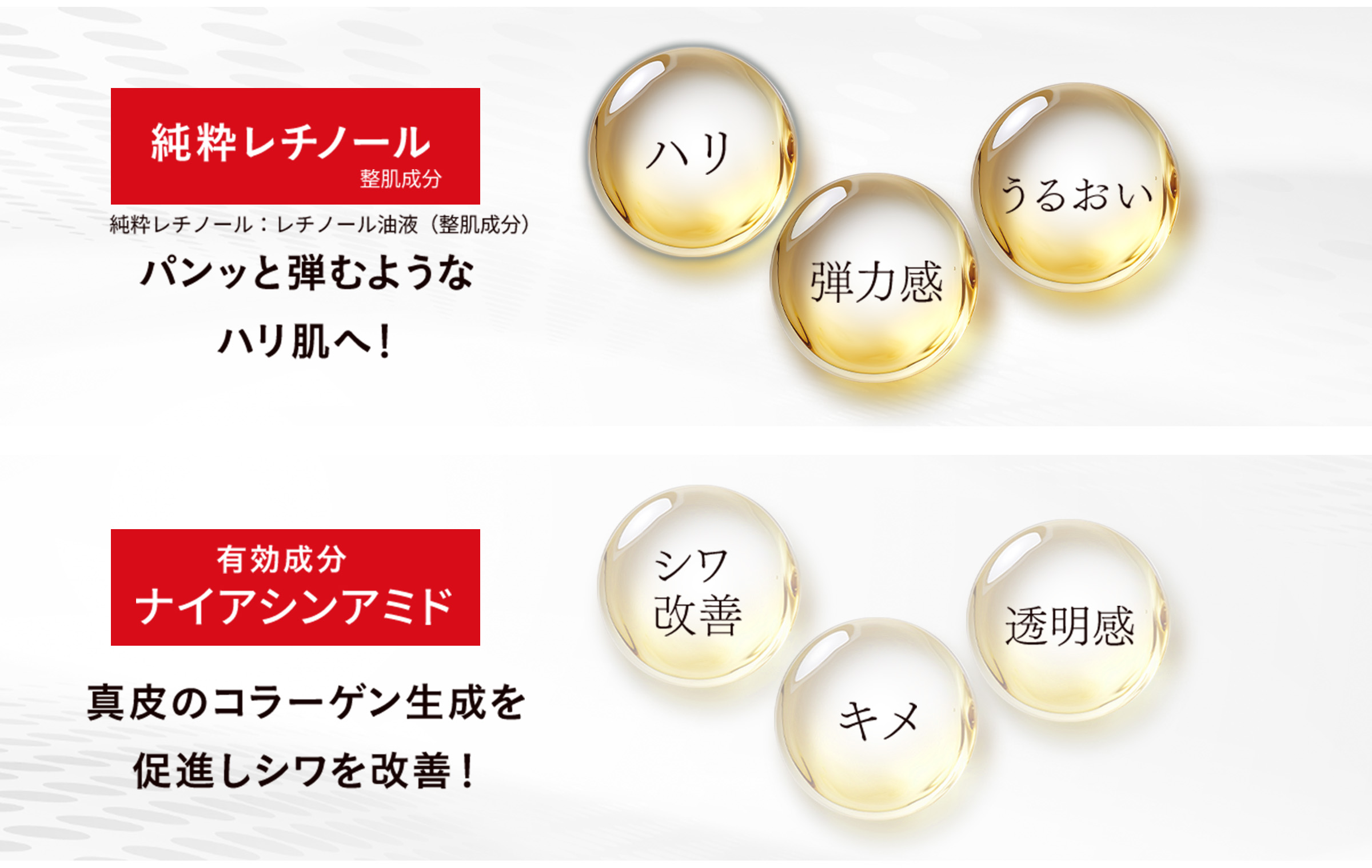 2大成分:純粋レチノール(整肌成分)、ナイアシンアミド