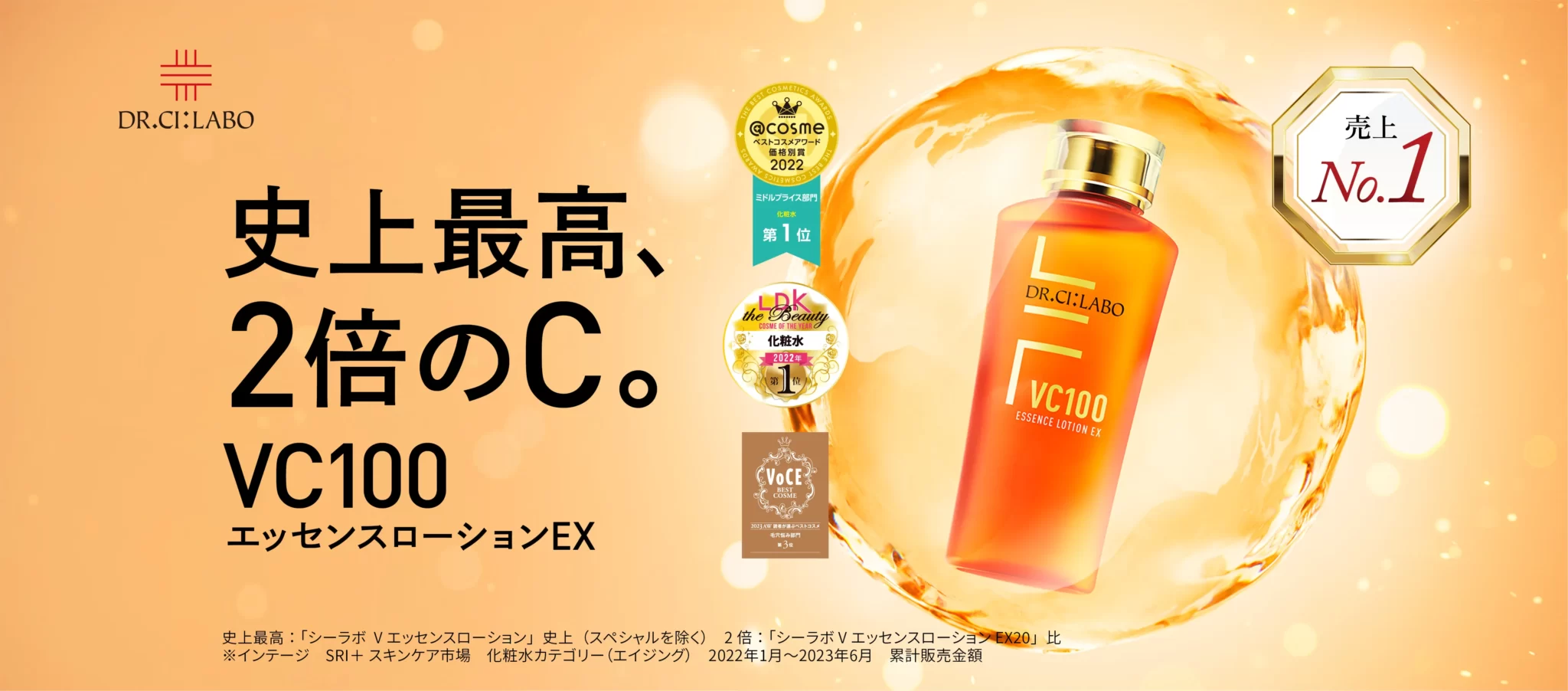 最高濃度:アスコルビン酸換算において、ドクターシーラボ®VC100ライン史上