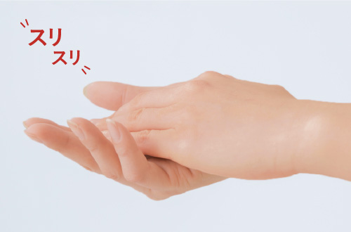 適量(5 0 0円硬貨大)を手にとり、摩擦にならないように優しく手で重ね塗り。