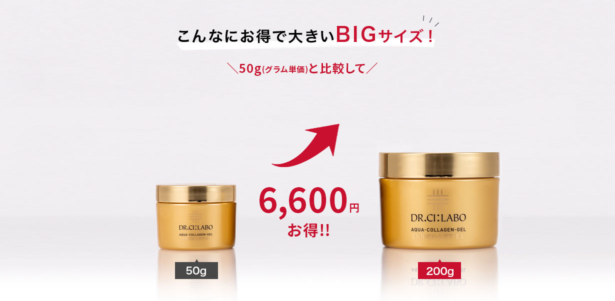 8,140円お得:エンリッチリフトゲル50g(税込5,500円)4個分の合計額と200g(税込13,860円)1個の差額より算出