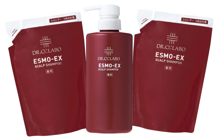 ESMO-EX 薬用スカルプシャンプー 500mL ¥3,542 つめかえ用 400mL ¥2,277