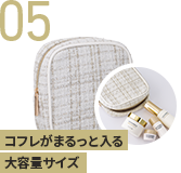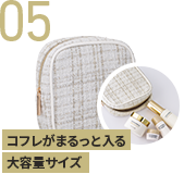 コスメや充電器、衛生用品など、小物を入れるのにぴったりなマルチポーチ。寒い季節にぴったりなツイード素材。