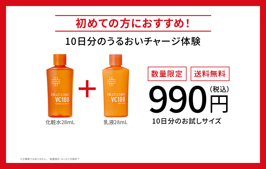 「VC100エッセンスローションEX」は、肌を整えて、光を放つような透明感のあるお肌に導きます。乾燥、肌のなめらかさ、肌の柔らかさ、毛穴の目立ち*1、くすみ*2、キメ、つやなどでお悩みの方や、特に悩みはなくても透明感のある肌を保ちたい方などにもおすすめです。