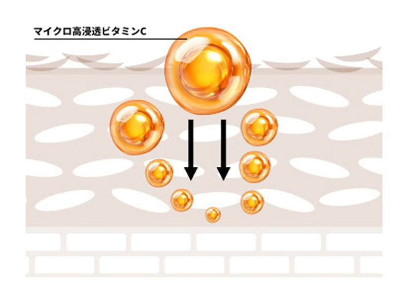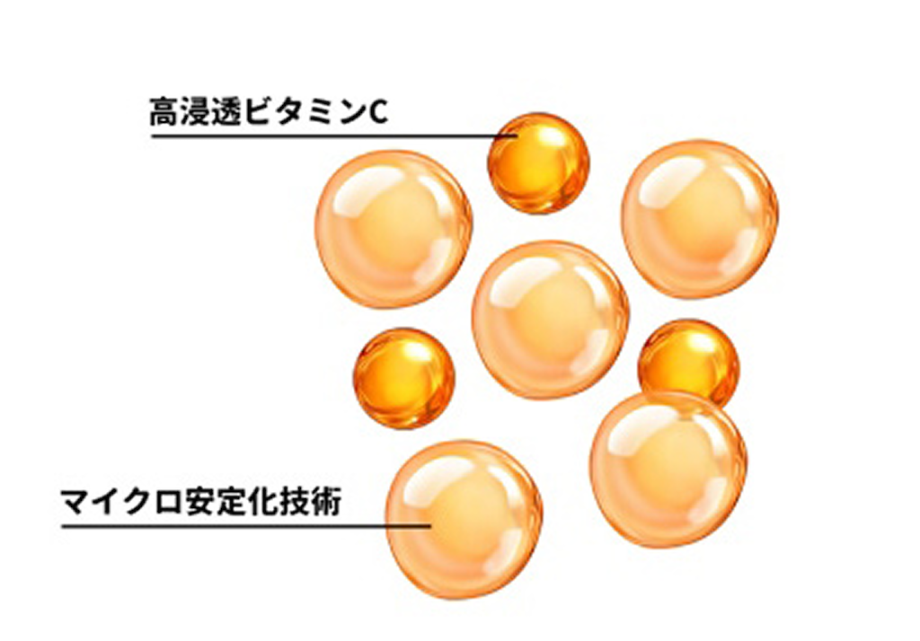 マイクロ安定化技術でビタミンCをカプセル化したことで、高濃度、安定処方の実現に成功。