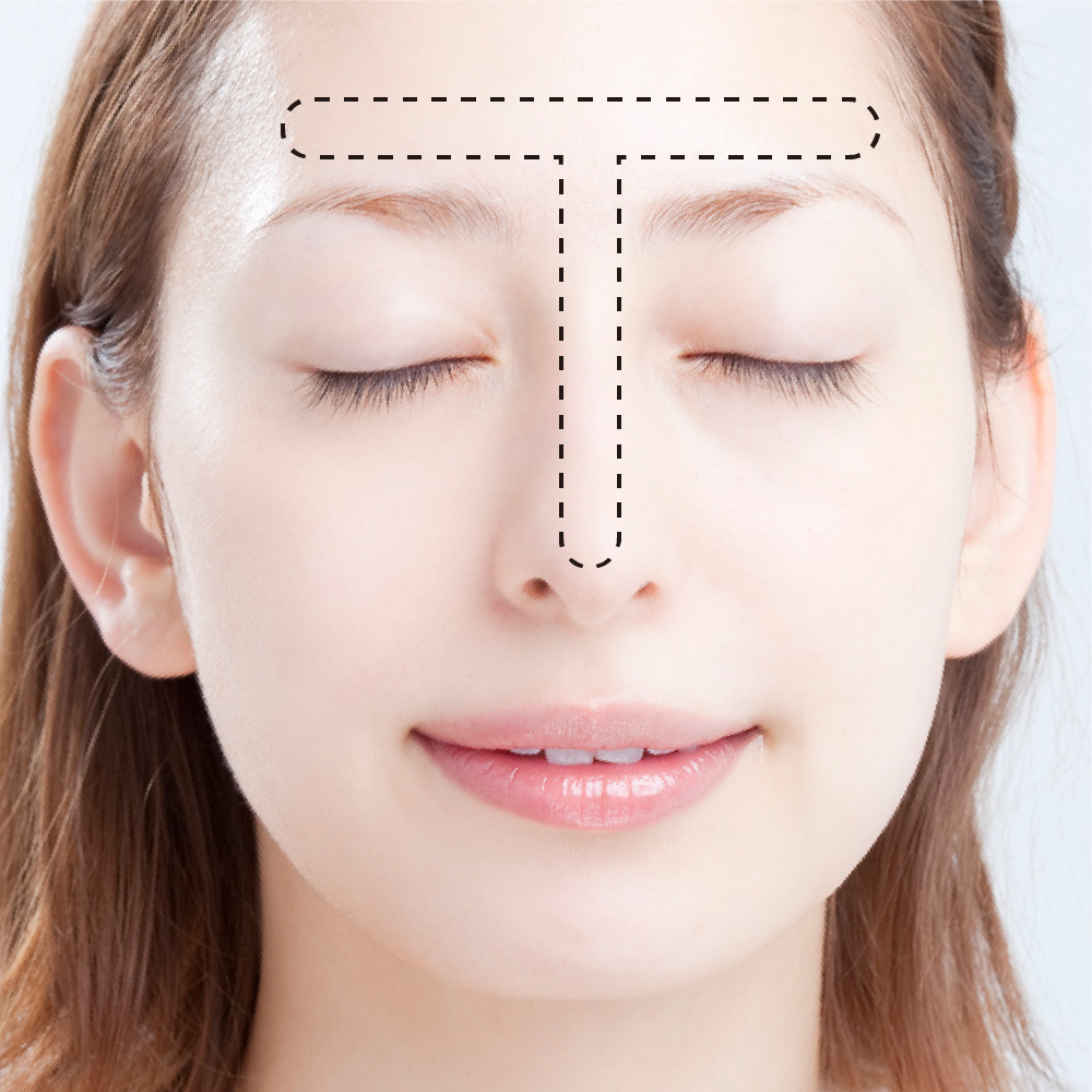 ❷ 皮脂量の多いT ゾーンから洗う