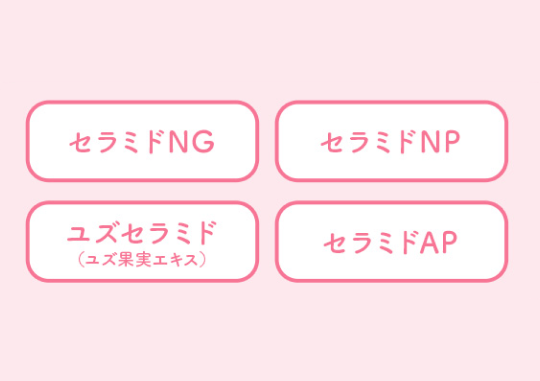 4種のセラミド:セラミドNG、セラミドNP、ユズ果実エキス、セラミドAP(保湿成分)